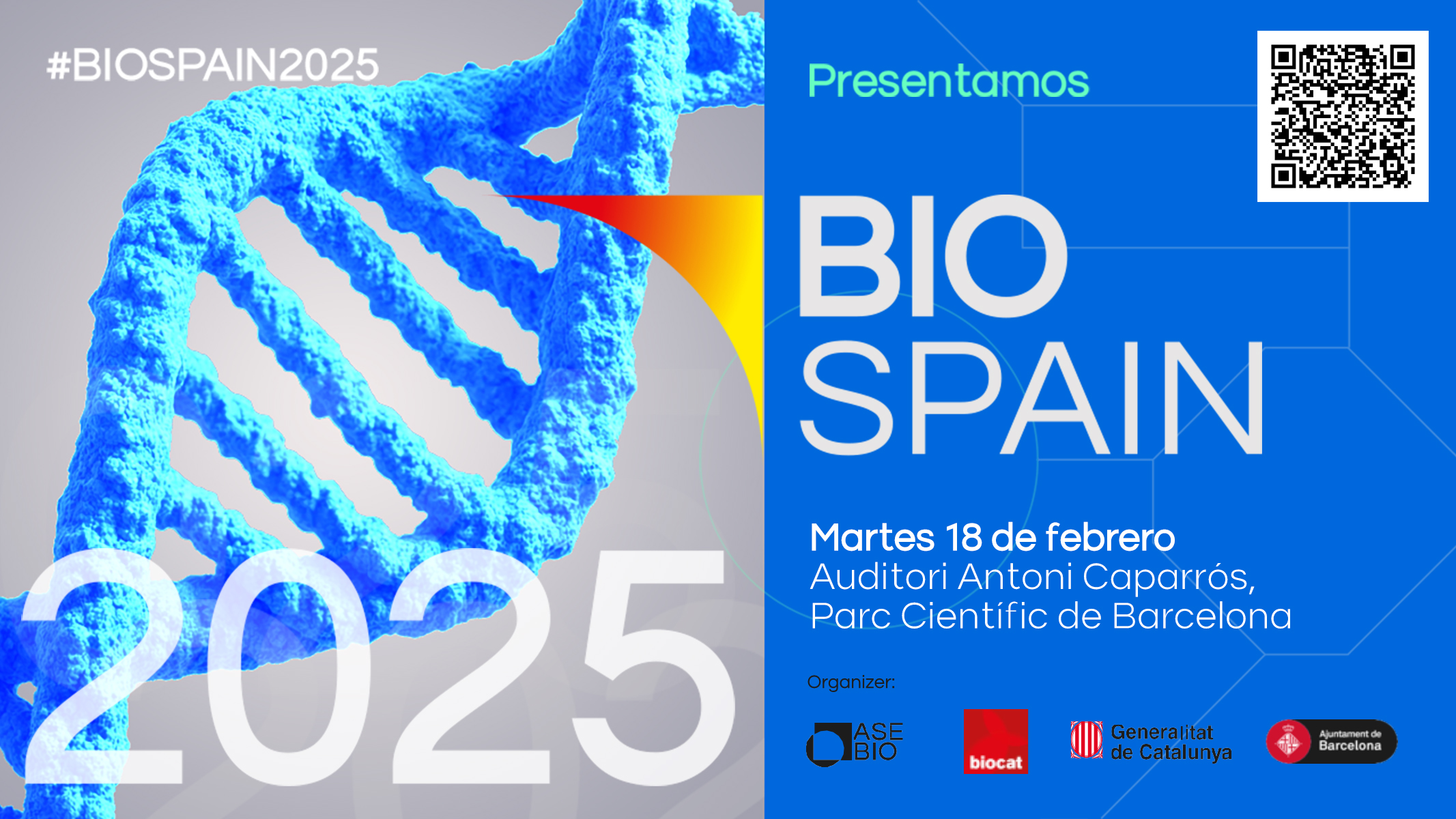El 18 de febrero os convocamos a un acto de presentación de BIOSPAIN 2025. Nuestra presidenta Rocío Arroyo, acompañada de autoridades del Ministerio de Sanidad, de la ciudad anfitriona, Barcelona, y de la Bioregió de Catalunya presentarán las principales novedades de esta edición y un primer avance del programa que se celebrará entre los días 7 y 9 de octubre en La Fira de Montjuïc.
