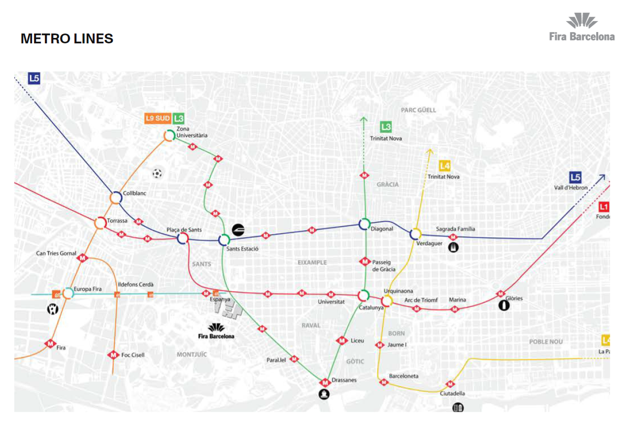 Located within Barcelona’s city center, Fira Montuïc has positioned itself as the preferred venue of international firms and organizations looking for a large, versatile, central space in which to hold their events in the Catalan Capital. The historical venue is conveniently linked by the local public transport network to both the metropolitan downtown and nearby El Prat International Airport (15 km).